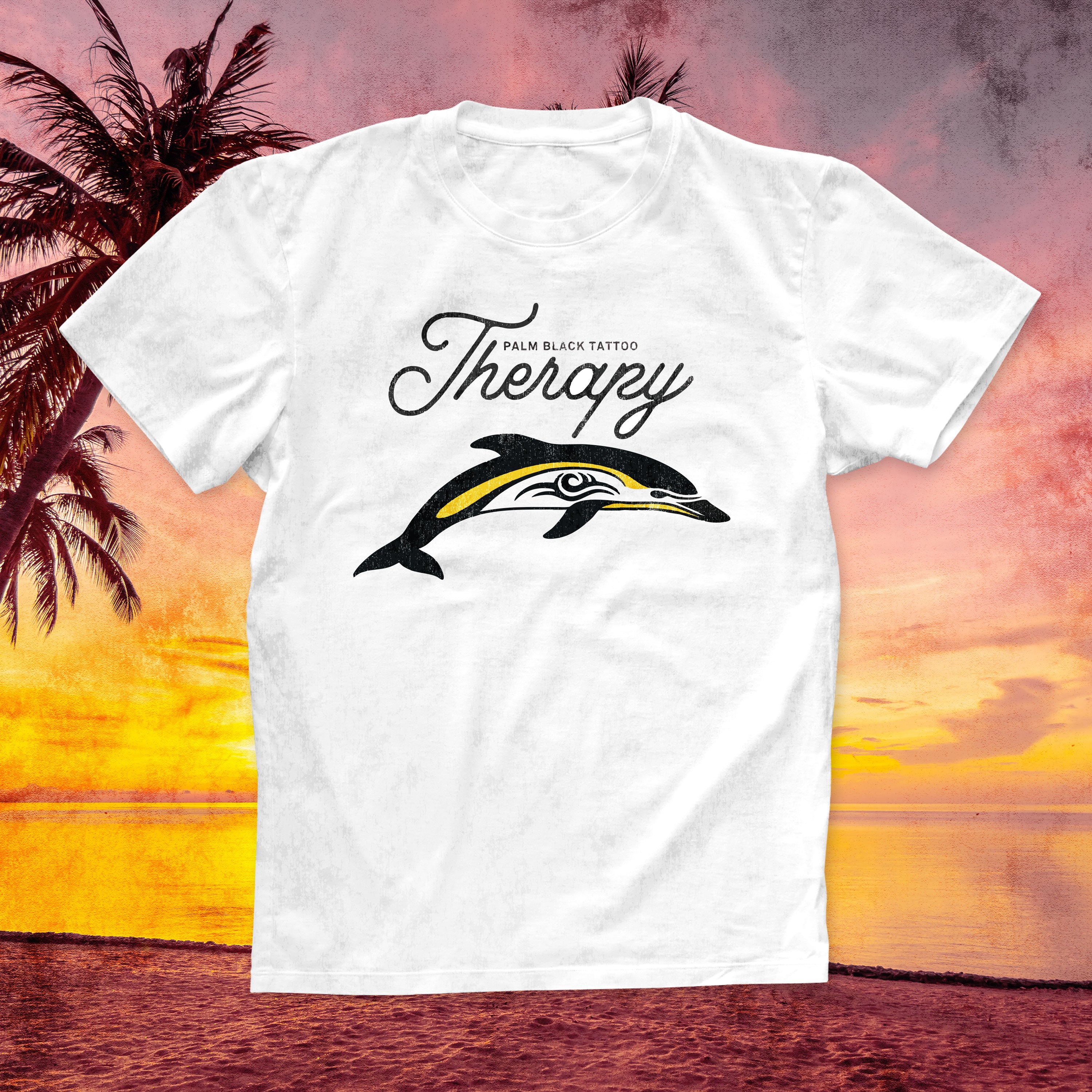 A clean white tee featuring a hand-drawn dolphin graphic with vintage tattoo attitude. Minimal, bold, and built for everyday wear.