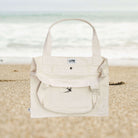 A structured canvas beach bag designed to carry everything without losing its shape. Made from heavy 100% cotton canvas, with a boxy build that fits towels, books, bottles, and the extras that always come along.